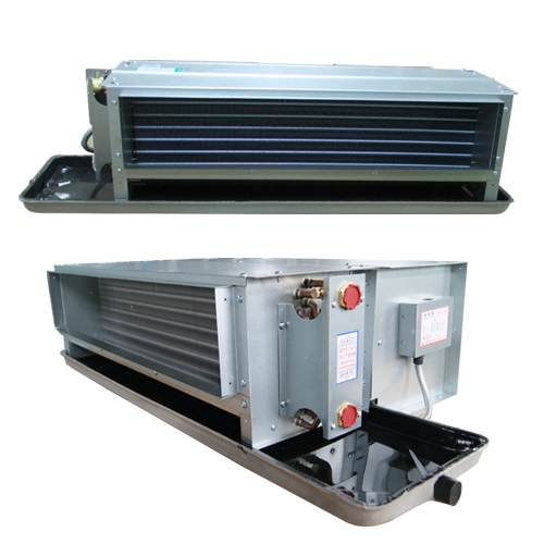盤管材料選用優質無縫紫銅管串波紋鋁翅片經液壓或機械脹管制成,盤管箱體內用吸音保溫材料粘貼,銅管交錯排列,具有極高的傳熱性能和極低的空氣阻力。